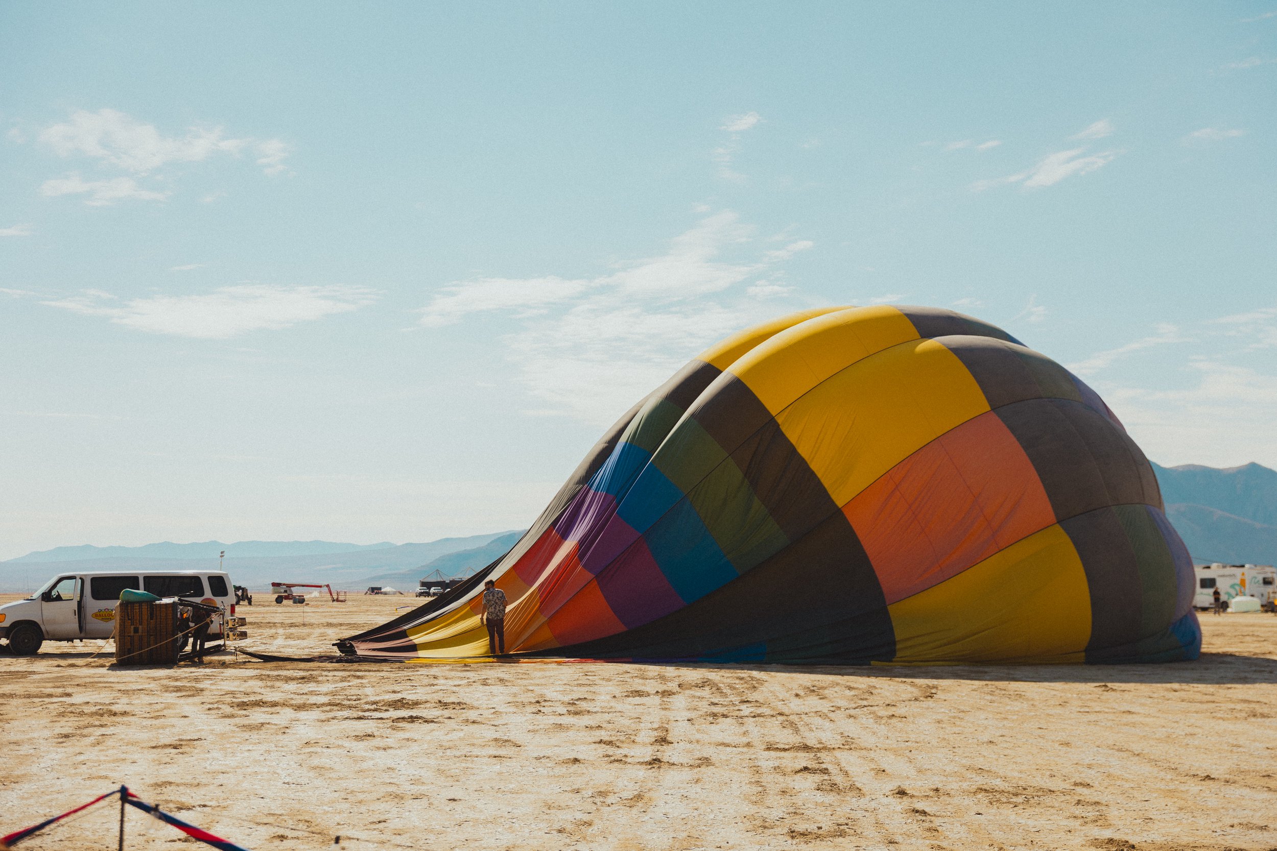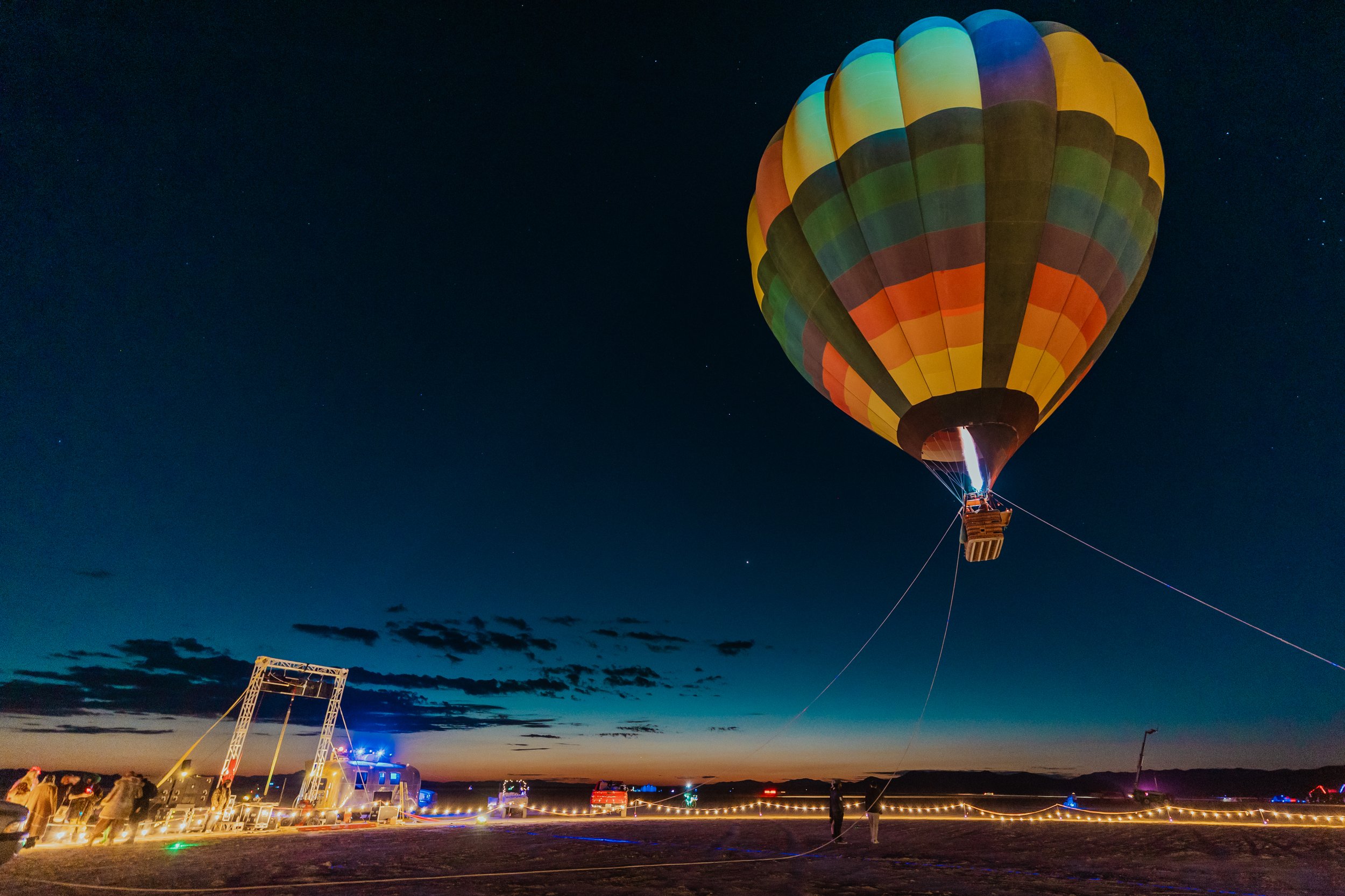 Our Signature Balloon rides in Black Rock City undergo thorough testing and meticulous planning to ensure a balance between enjoyment and safety, taking into account the region's unpredictable weather patterns ALL FLIGHTS ARE WEATHER PERMITTING.